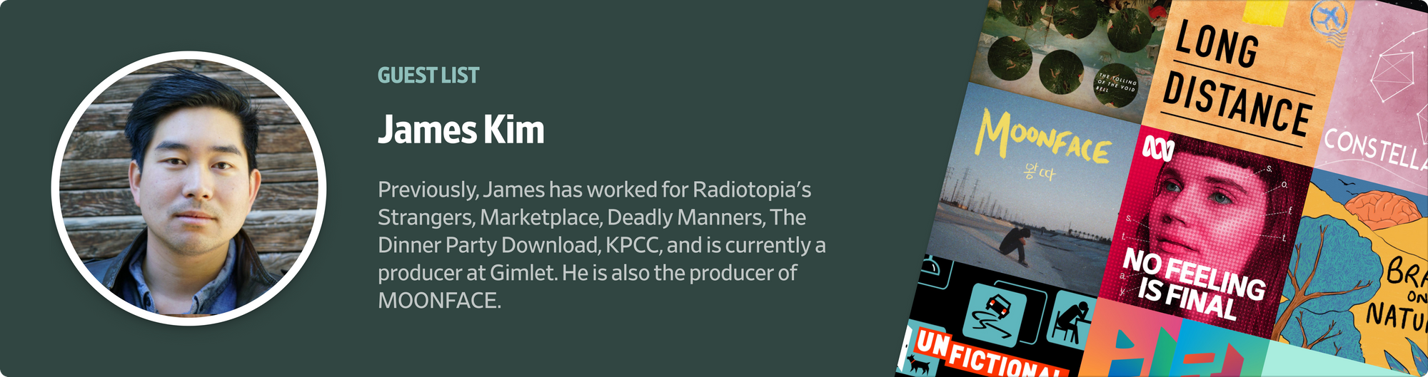 I’m from Los Angeles, and I put a lot of heart into what I do. Previously, I’ve worked for Radiotopia’s Strangers, Marketplace, Deadly Manners, The Dinner Party Download, KPCC, and I’m currently a producer at Gimlet. Because I have no life, I make my own podcasts outside of work. Most recently, I made the fiction show MOONFACE which I am still paying off the personal loan. Worth it!
