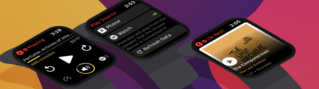 Standalone Apple Watch playback, or Watch Play Source, is a Pocket Casts Plus feature that gives you the ability to listen to episodes on your Apple Watch Series 2 or later, without needing to have your iPhone with you! All you need is a pair of Bluetooth headphones.