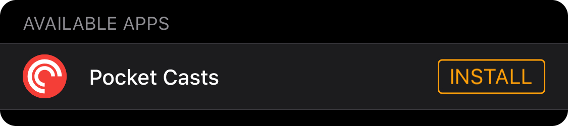 - In the list of “Available Apps” find Pocket Casts and tap “INSTALL”.