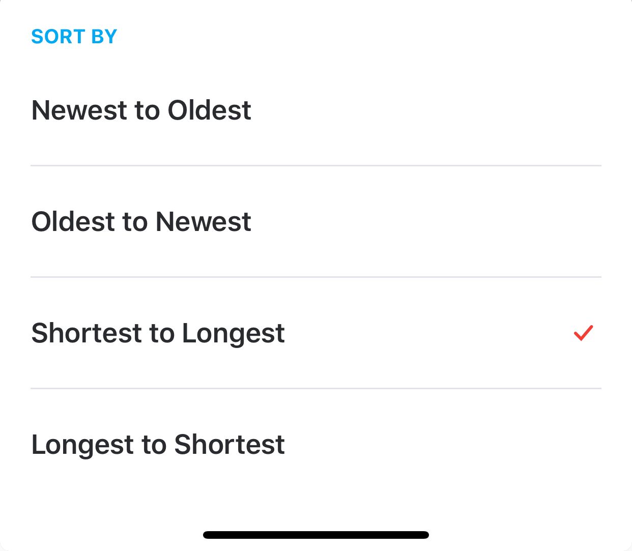 To make it even easier to find just the right one, you can now sort by duration as well: