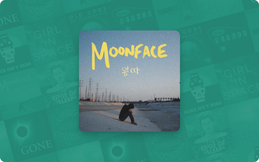 My most vivid memory of listening to Moonface is having to go to the bathroom in my office building so I could cry in peace. This is the kind of fiction podcast that stays with you, that burrows itself inside of you. Created, produced, and narrated by Joel Kim Booster, Moonface is a six-episode podcast about a son who is struggling to come out to his mother because they don’t speak the same language. Funny, moving, poetic, and incredibly human—I recommend Moonface to anyone who wants to feel a lot of things. Just have tissues ready.