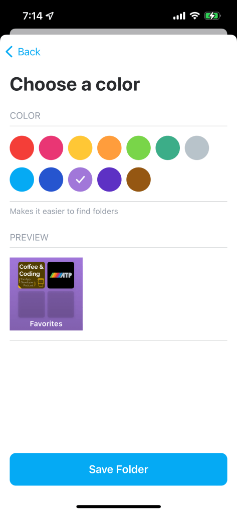 Then click “save folder.” And voilà! It’s really that simple. Now you have a folder of all your favorite podcasts. You can sort items inside that folder and even enable badges if you want to see when new episodes of the included podcasts are released. To create another folder, simply repeat the steps described above.