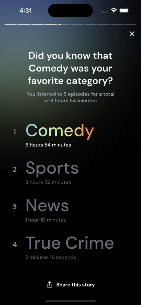 - Your episode completion rate (exclusive to Pocket Casts Plus)