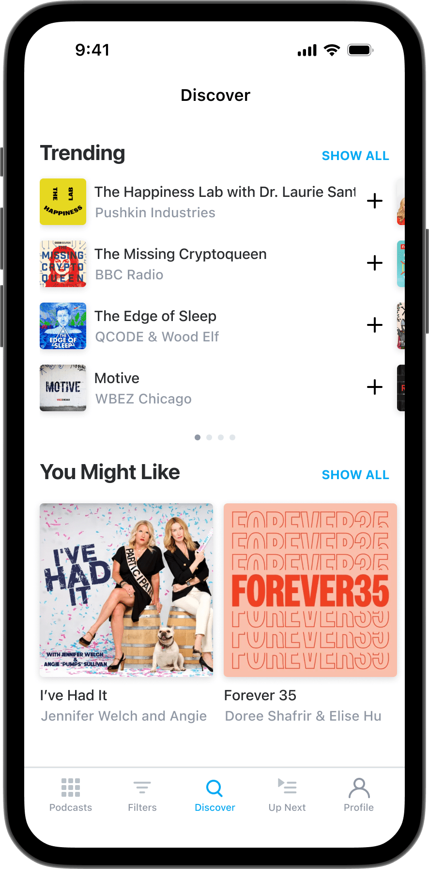 - You Might Like – Personalized podcast suggestions based on your playback history.